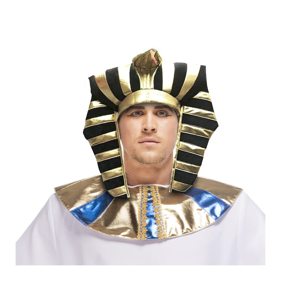 Le Pharaon gouverne l'Égypte avec une main de fer. Jouez ce rôle le temps d'une soirée costumée en enfilant votre coiffe dorée et noir de Pharaon. Cet accessoire complètera à merveille votre déguisement de pharaon ou de prince d'Égypte. Il s'agit d'une coiffe au design très caractéristique, présentant une succession de rayures noires et or et bronze.