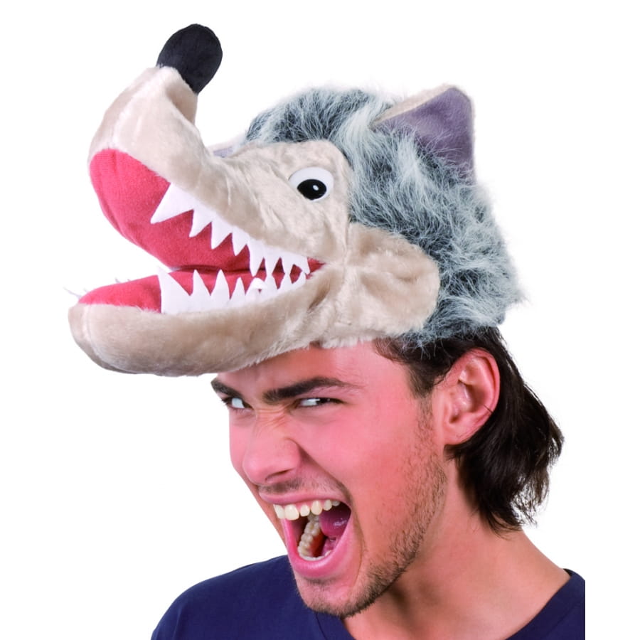 Féroce tout en étant humoristique cette coiffe de méchant loup de couleur beige et gris. Cet accessoire est parfait pour un déguisement d'animal original.
