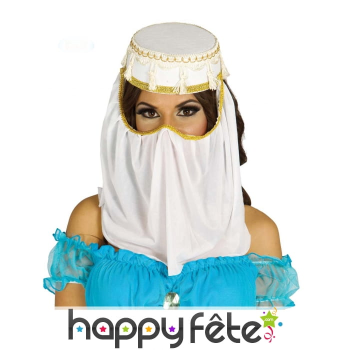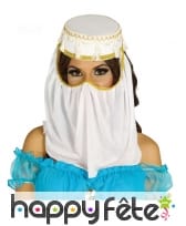 Pour compléter votre costume de danseuse de Raqs Sharqi, nous vous proposons cette Coiffe orientale avec voile blanc.