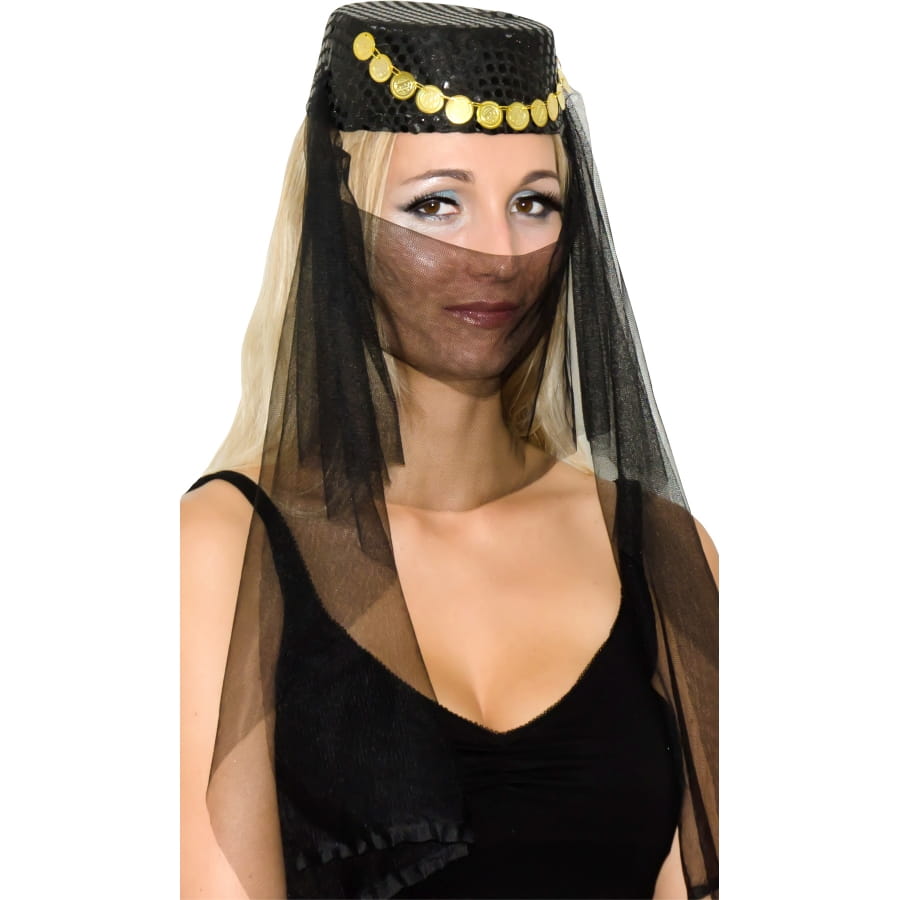 Faites revivre contes des mille et une nuits avec cette coiffe de couleur noire et ornée de paillettes assortis. Cet accessoire est idéal pour une soirée cabaret.