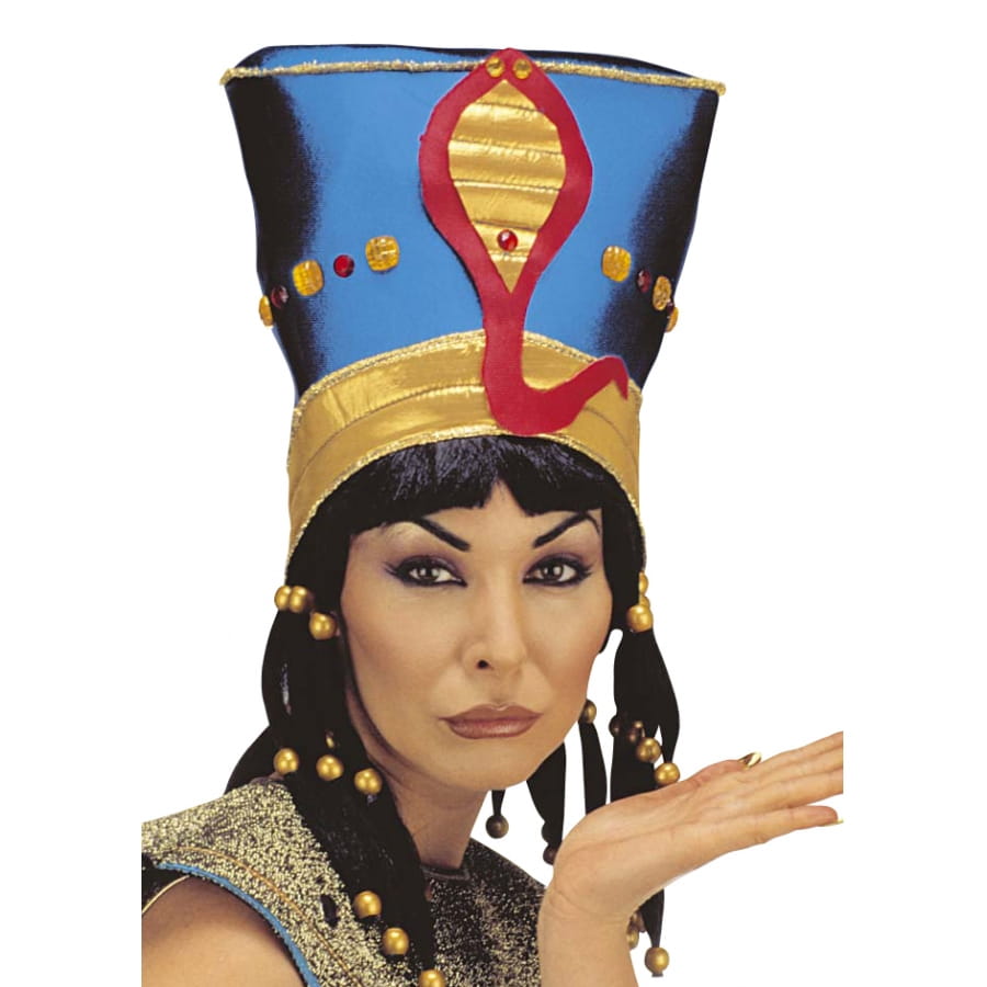Vous ferez une superbe Néfertiti avec cette coiffe de reine d'Egypte noire, bleue et dorée. Cet accessoire fera de vous une Cléopâtre ou une Néfertiti parfaite.