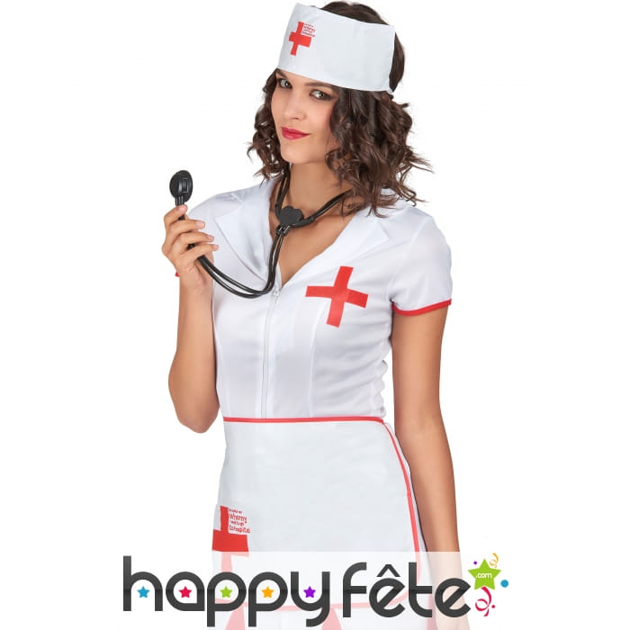 Avec ce kit coiffe, tablier et stéthoscope d'infirmière, vous n'aurez aucune difficulté à vous faire passer pour une aide-soignante.
