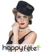 Il est décoré par une fausse fleur fixée sur le côté de la calotte.
