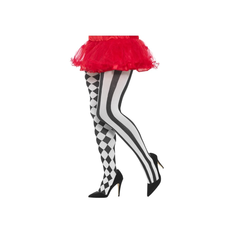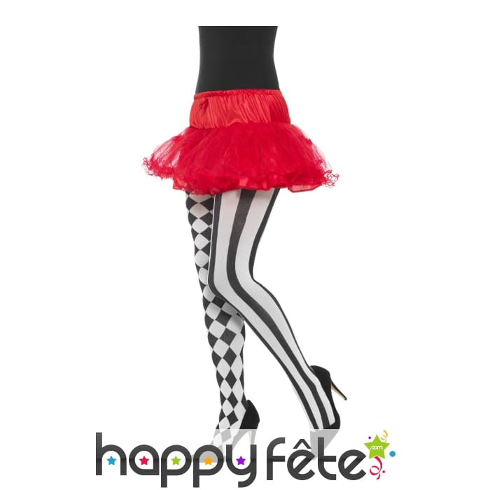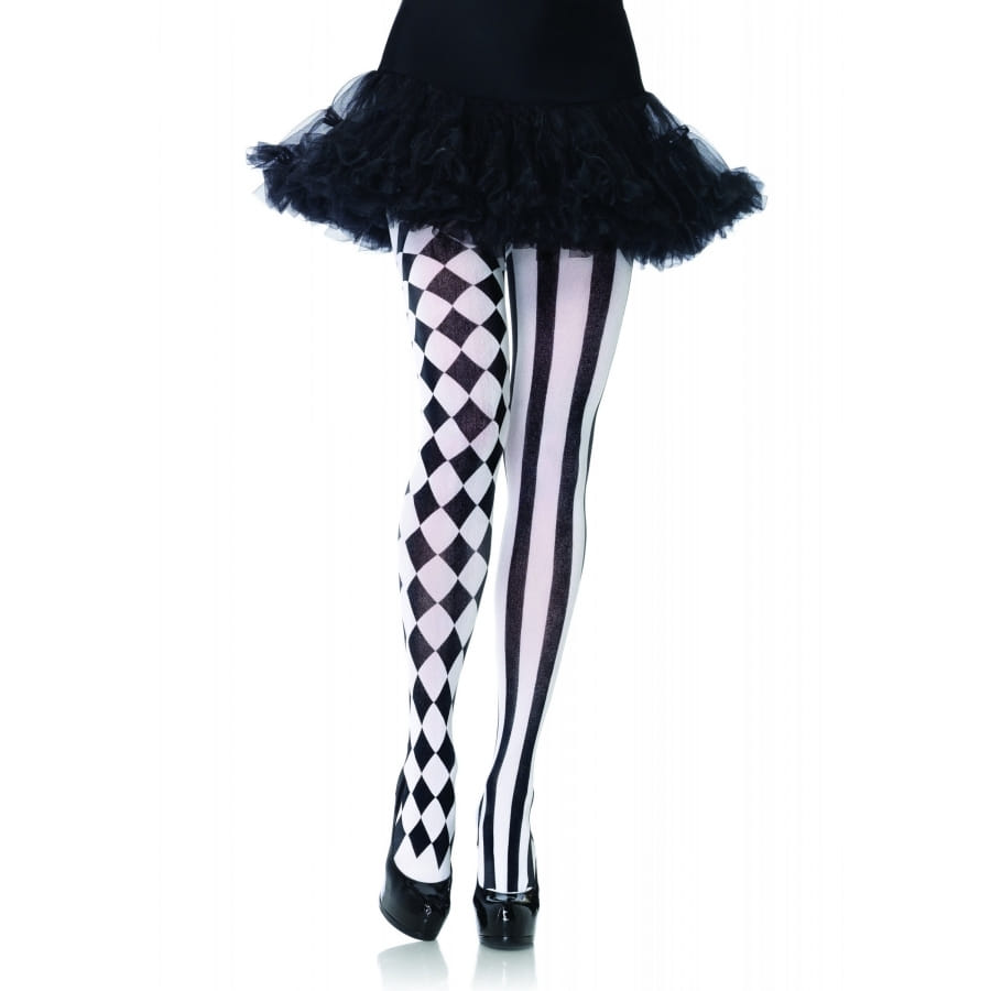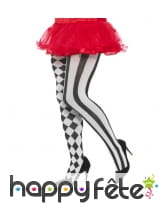 Fous rires assurés avec ces collants arlequin noir et blanc ! Pour jouer les bouffons, cet accessoire un peu singulier est de rigueur. Il vous permettra, Mesdames, de vous déguiser en arlequin. Le collant est à base de blanc, avec sur un pied, des losanges noirs, et sur l'autre des rayures noires. Choisissez sans hésiter cet article pour entrer dans le monde du cirque.