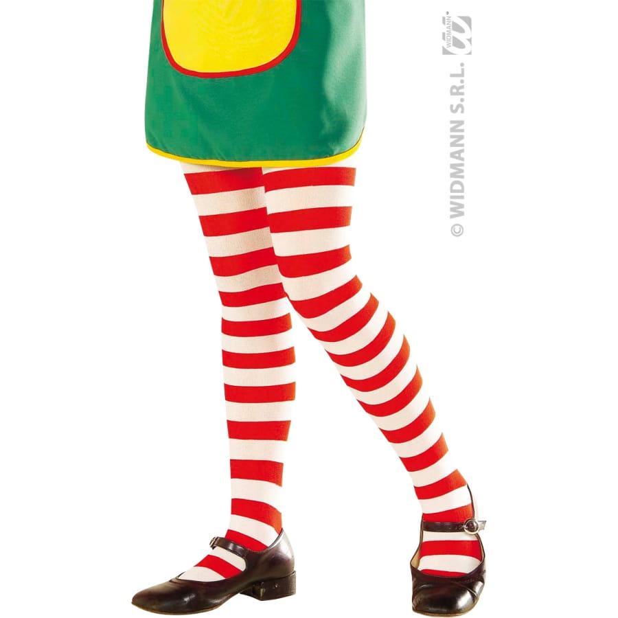 Paire de collants de clown de couleur rouge et blanche. Cet accessoire n'est disponible qu'en taille unique. Il est idéal pour déguiser votre enfant dans une tenue de clown colorée.