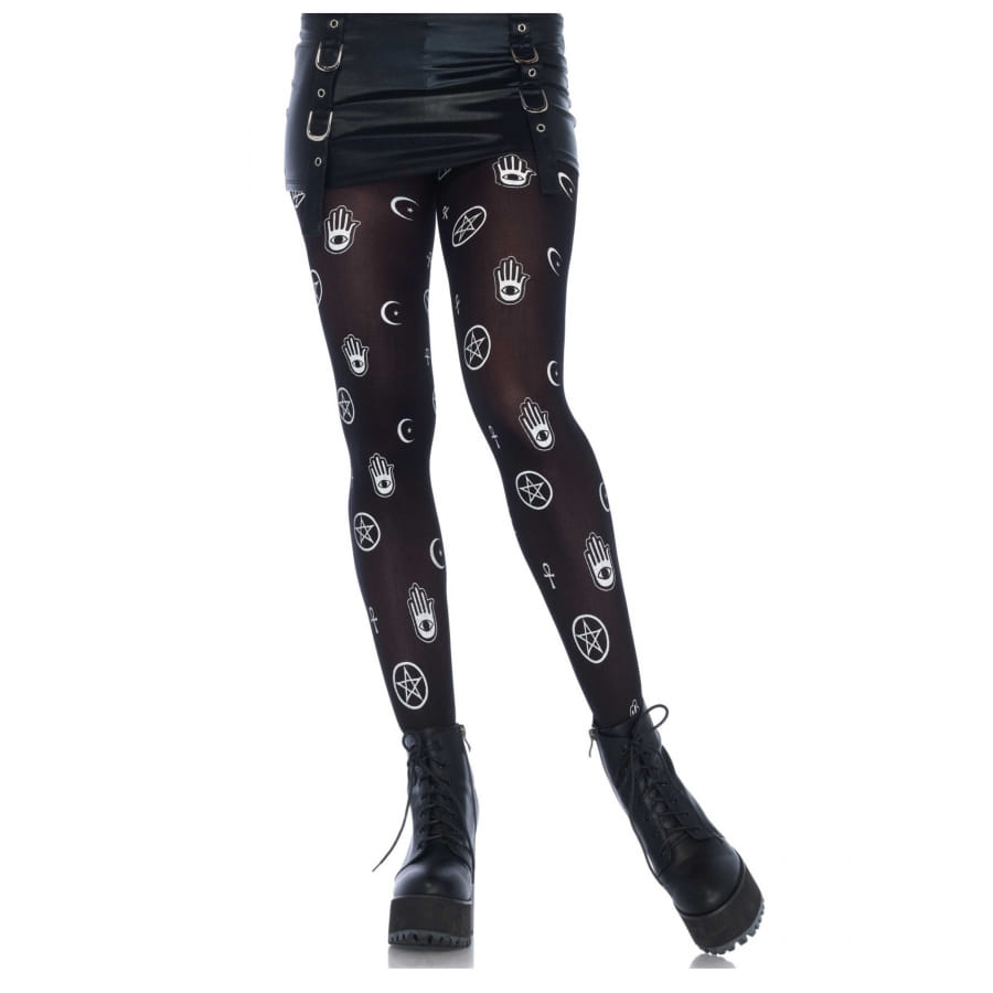 Nous vous présentons nos Collants noirs opaques motifs main de Fatima.