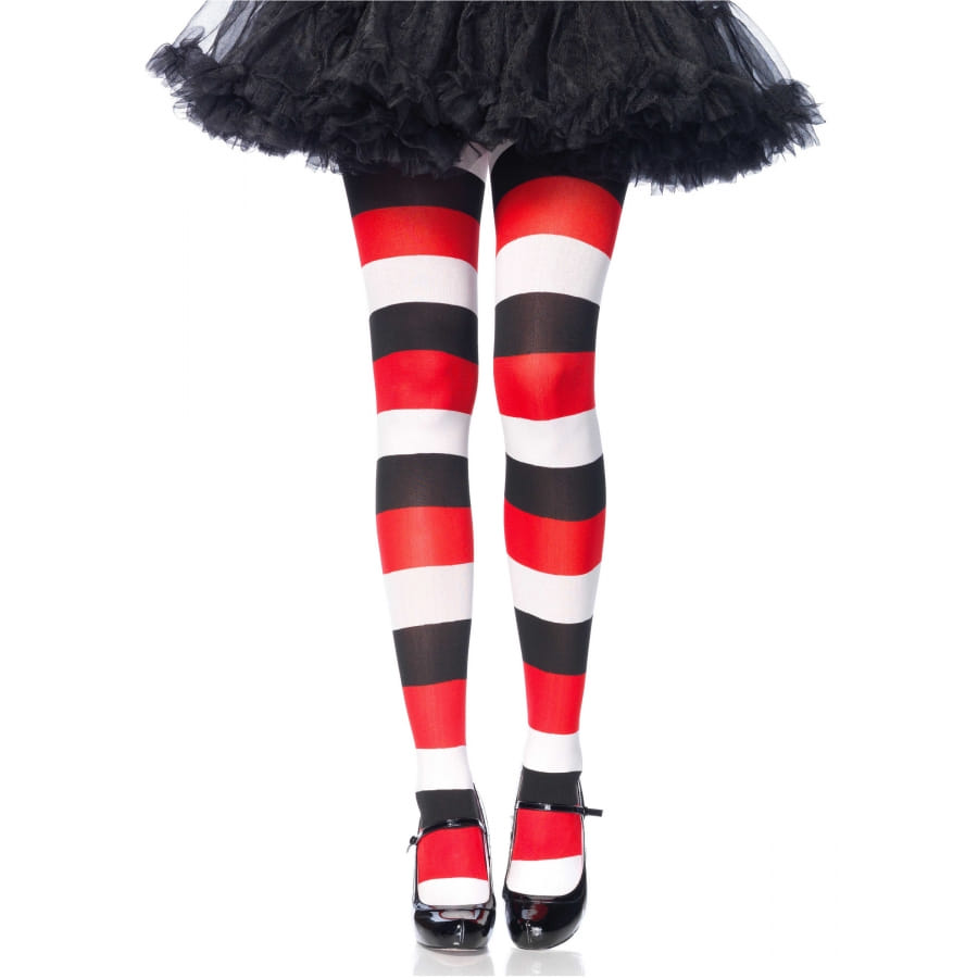 Ces magnifiques collants rayés blanc rouge noire, seront parfaits pour ajouter une touche de couleur à votre costume d'arlequin.