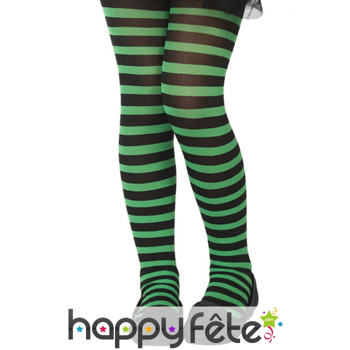 La paire de collants rayés noir et vert pour enfant et destinée aux filles.
