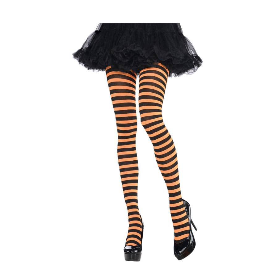 Portez nos collants rayés orange et noirs pour femme et apportez une touche élégante à un costume d'Halloween.
