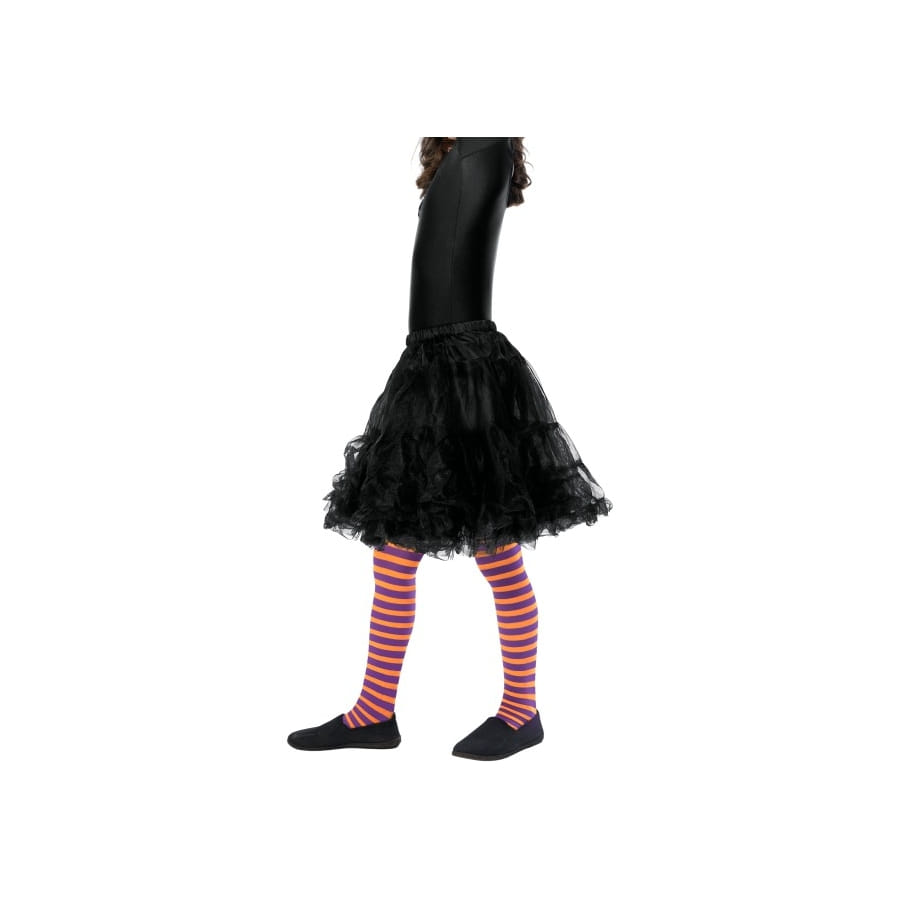 Bien que la couleur noire soit à l'honneur durant la fête des morts, les autres couleurs ne sont pas en reste. Pour le prouver, nous proposons des collants rayés pour enfant, orange et violet. En effet, il s'agit d'une paire de collants pourvue de motifs rayés orange et violets. Cet accessoire ira à merveille avec un déguisement de sorcière ou de magicienne, pour le plus grand plaisir de votre enfant !