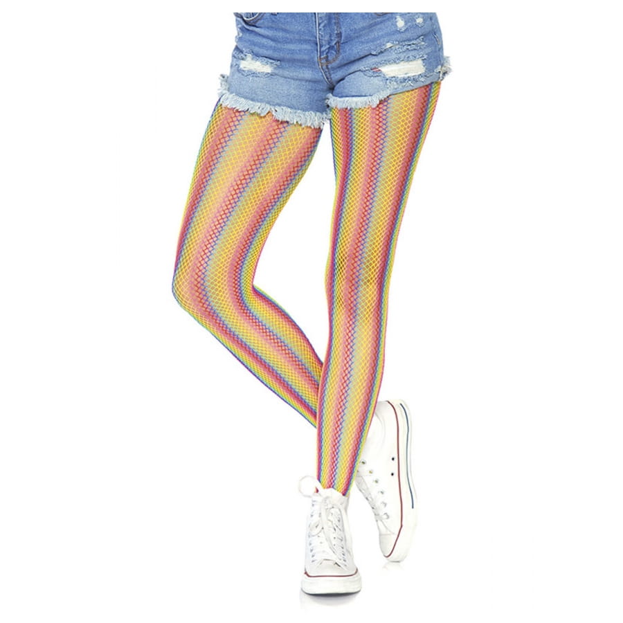 La paire de collants résilles multicolore pour adulte destinée aux femmes.