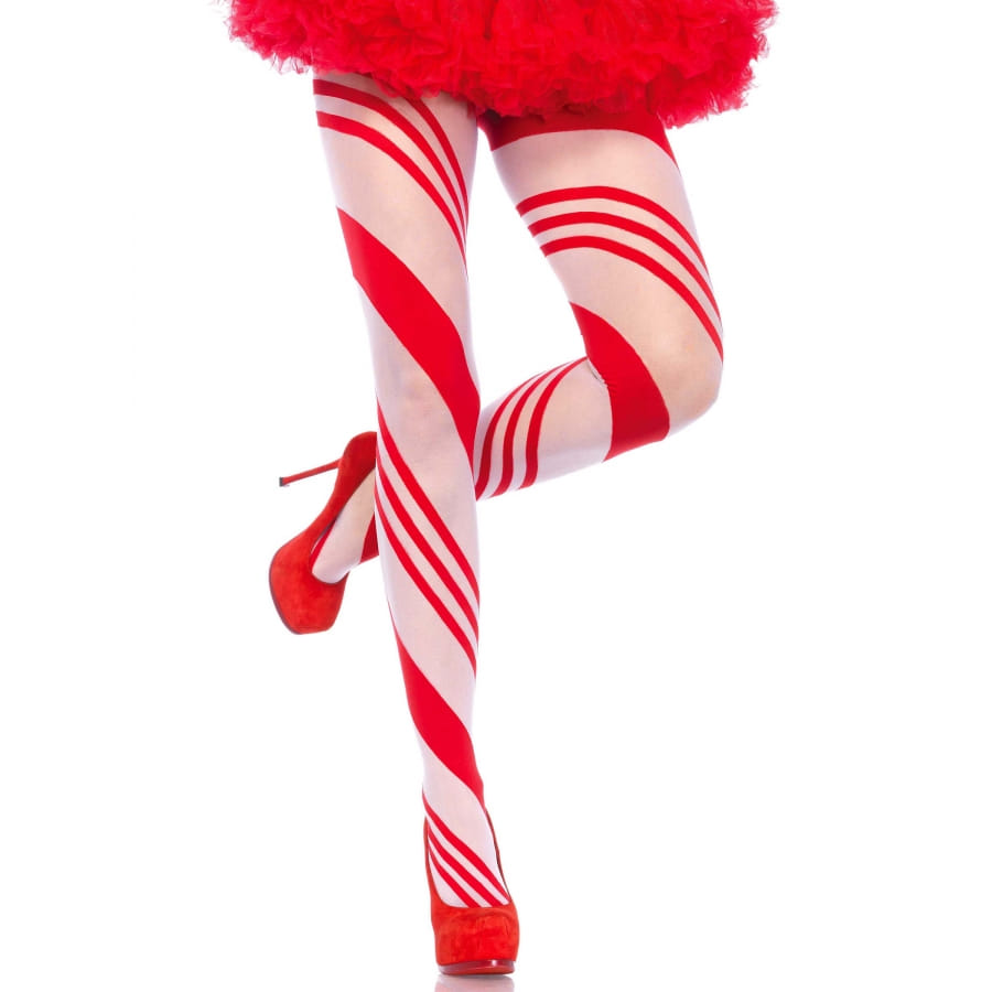 Portez ces collants sucre d'orge pour agrémenter l'une de vos tenues pendant les fêtes de Noël.