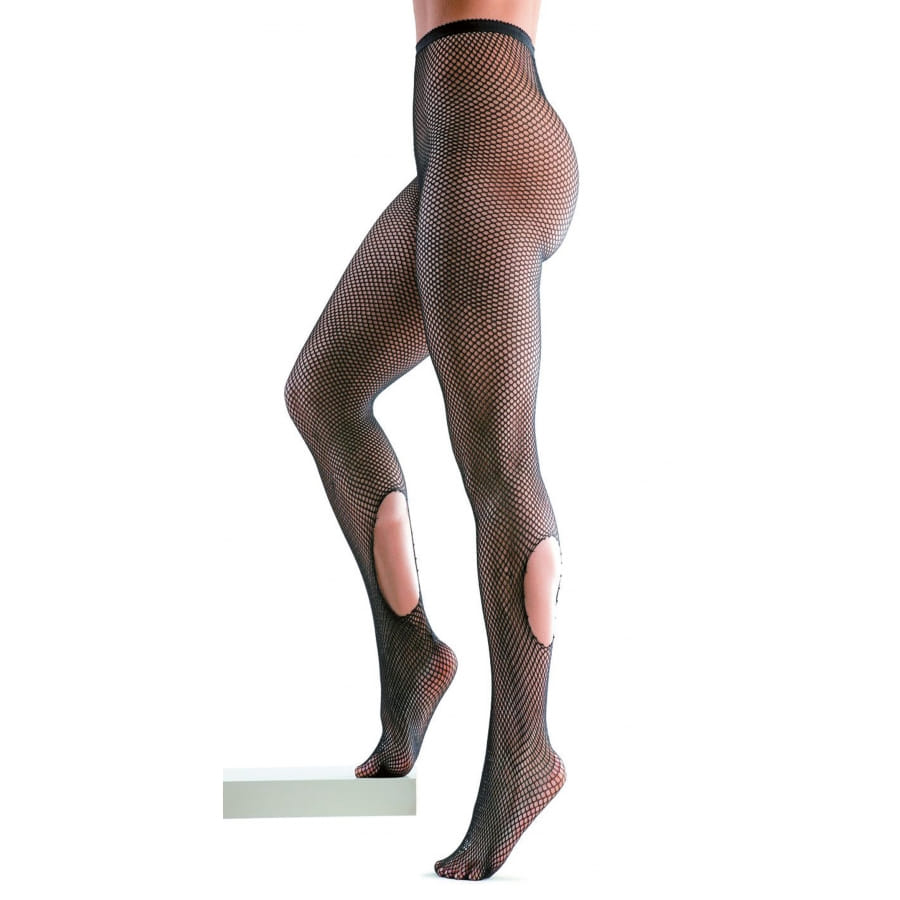 Collants troués en résille de couleur noire pour femme ou adolescente. Les collants sont troués au niveau de la cuisse et du mollet. Cet accessoire idéal pour compléter sa tenue lors d'une soirée gothique ou punk ou pour incarner une sorcière pour Halloween.
