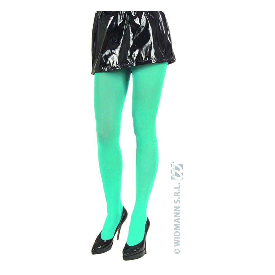 Paire de collants de couleur turquoise. Cet accessoire n'est disponible qu'en taille standard. Il est idéal pour compléter un déguisement de danseuse disco ou une tenue de fée.