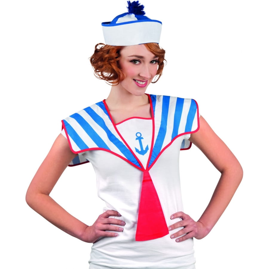 Complétez votre tenue avec cette superbe collerette de marin avec cravate rouge.
