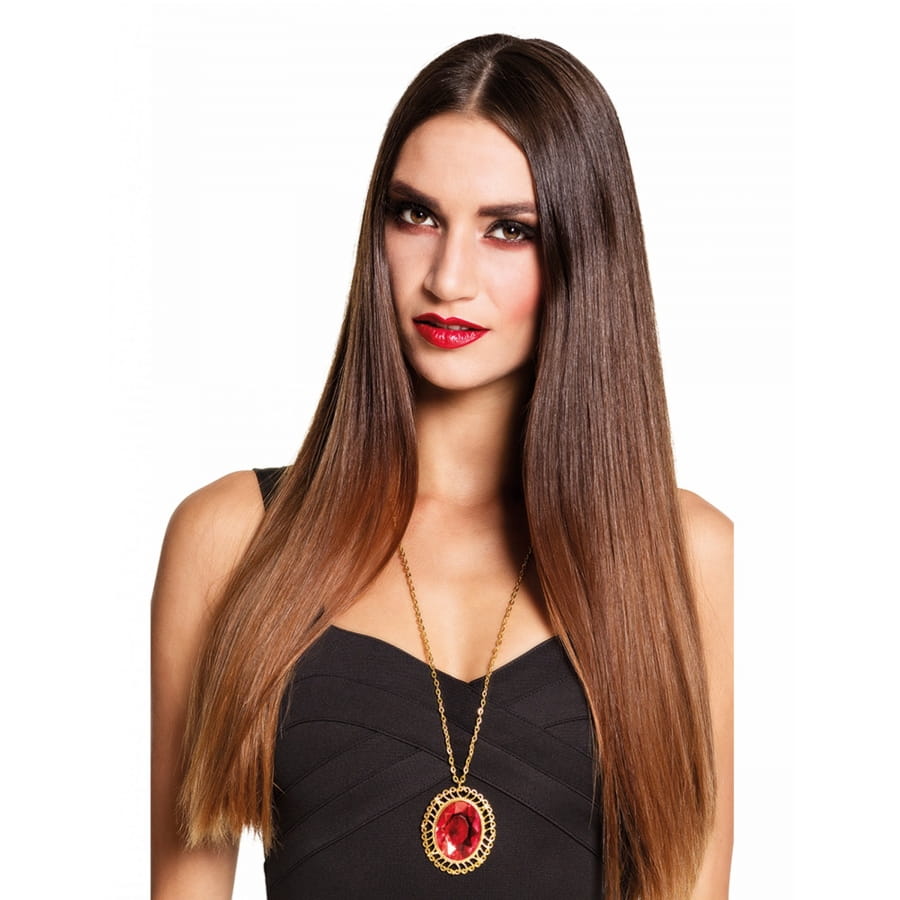 Elle arbore un pendentif en forme de grande pierre rouge d'une dimension de 6 x 5 cm.