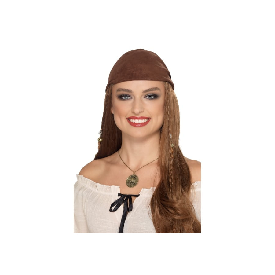 Les femmes pirates aussi se parent de bijoux ! Découvrez un ravissant collier avec médaillon de pirate à porter avec votre déguisement. Il est de couleur or et bronze et le médaillon affiche un motif tête de mort entouré de magnifiques petits détails. L'idéal sera de porter ce collier avec un haut légèrement décolleté pour bien le mettre en évidence.