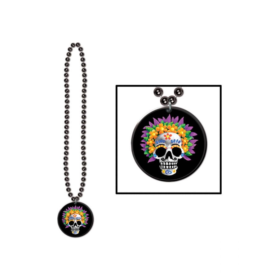 Le collier avec médaillon Dia de los muertos est un accessoire qui apportera la touche colorée à votre tenue d'halloween pour le soir de la fête du jour des morts.
