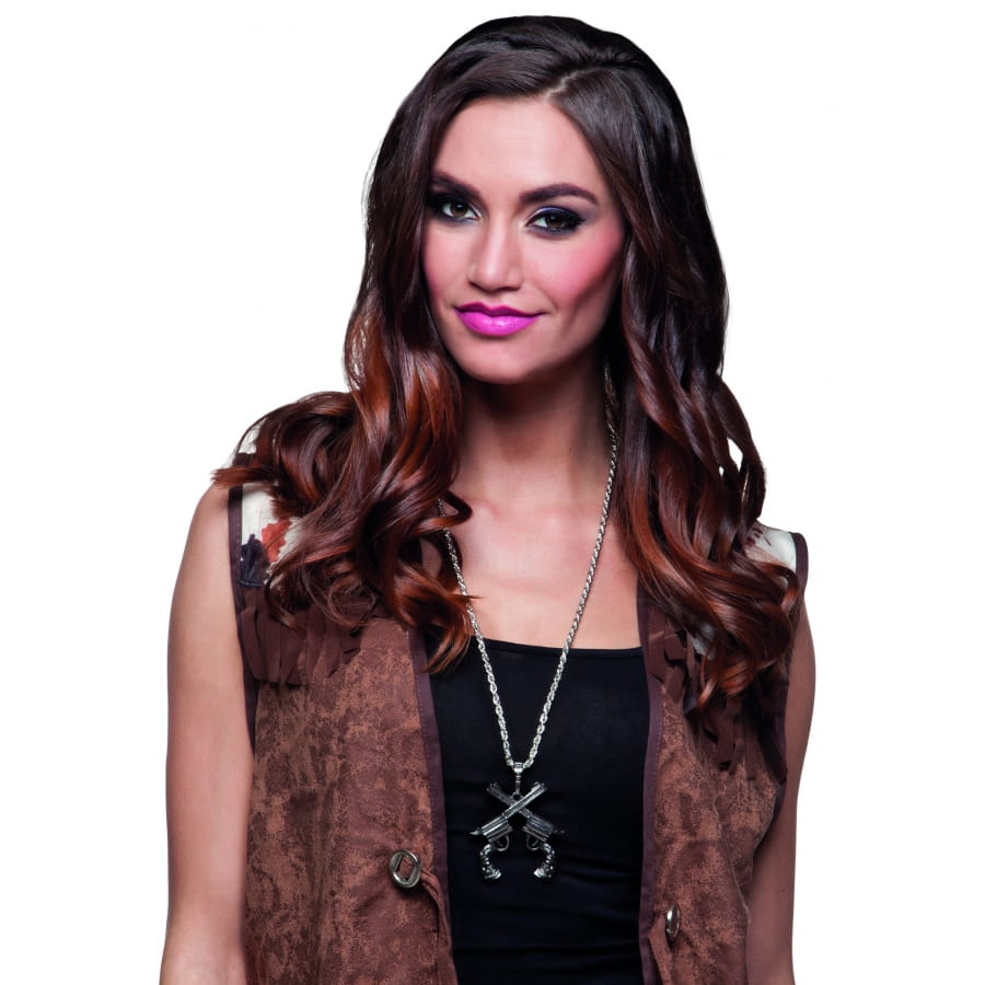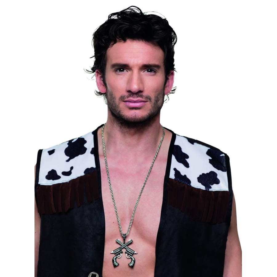 Le collier avec pendentif double pistolet est un accessoire unisexe pour adulte.