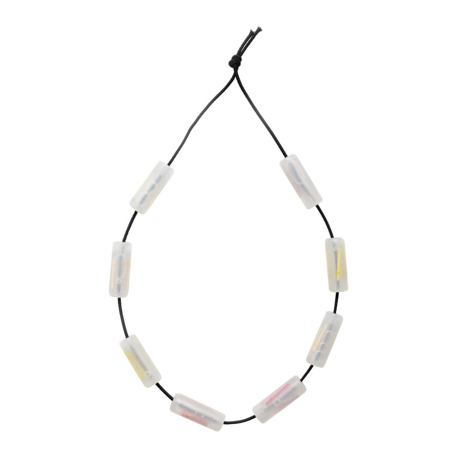 Collier composé d'une corde noire et de 8 anneaux lumineux multicolores, pour homme, femme, adolescent ou adolescente. Cet accessoire peut être utilisé à l'occasion d'un carnaval, d'Halloween, de la fête de la musique ou d'une fête nationale.