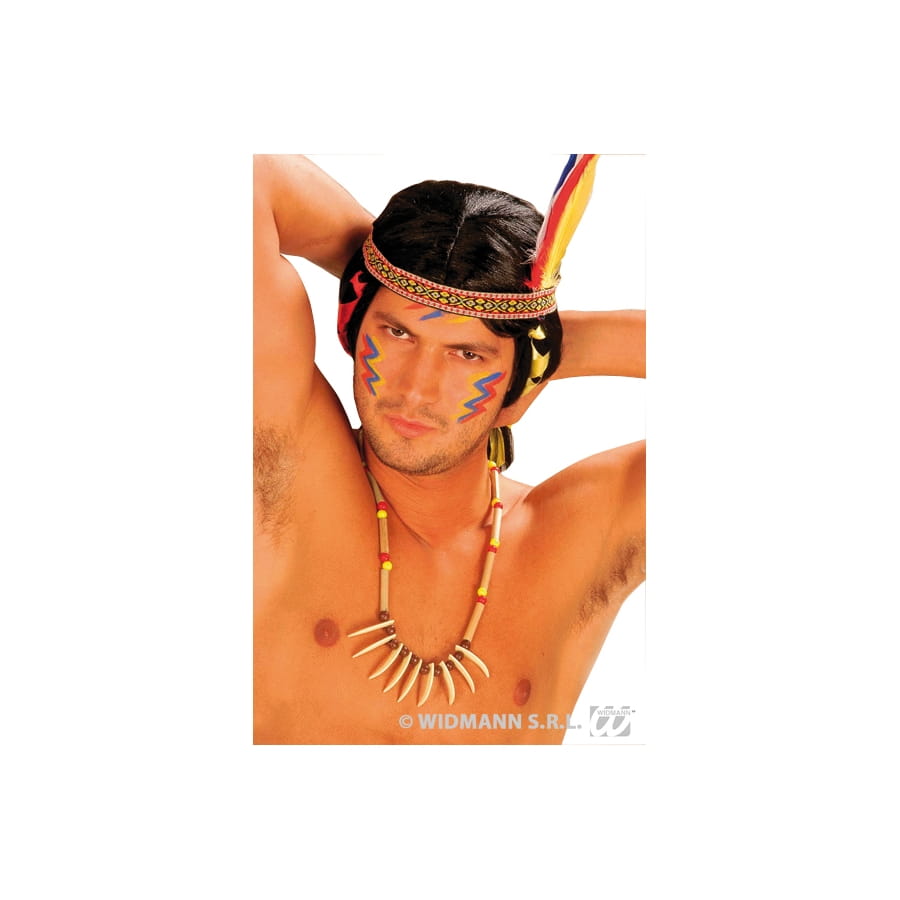 Collier d'Indien composé de petits copeaux ponctués de perles rouges et jaunes, et de dents séparées par des perles noires pour homme, femme, adolescent ou adolescente. Lors de la commande, il vous sera impossible de choisir la couleur et le modèle de l'accessoire. Vous le recevrez comme présenté. C'est l'accessoire parfait pour compléter une tenue d'Indien ou d'Indienne pour une soirée Western.