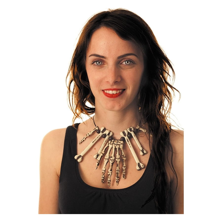 Ce Collier d'os avec main squelette sera idéale pour compléter votre déguisement macabre lors d'une soirée costumée.