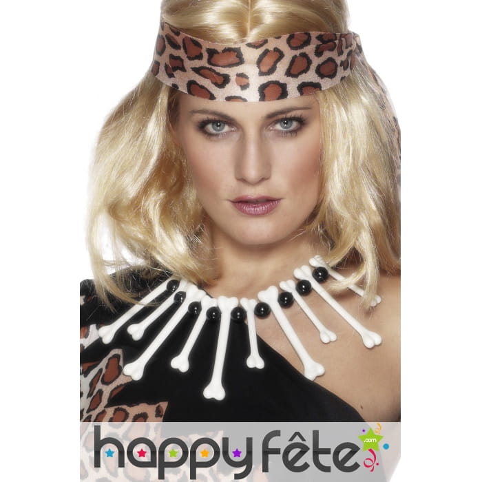 Se déguiser en homme ou en femme des cavernes n'est pas bien difficile vu qu'à l'origine, ils ne revêtaient que des peaux d'animaux. Mais pour accessoiriser votre costume, vous aurez besoin de ce fantastique collier d'ossements. Il est formé par une succession d'os de couleur blanche : cinq grands et cinq petits. Chaque os est espacé d'une perle noire.