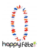 Ce collier composé de fausses fleurs en tissu porte les couleur rouge, blanc, bleu du drapeau de la Hollande.
