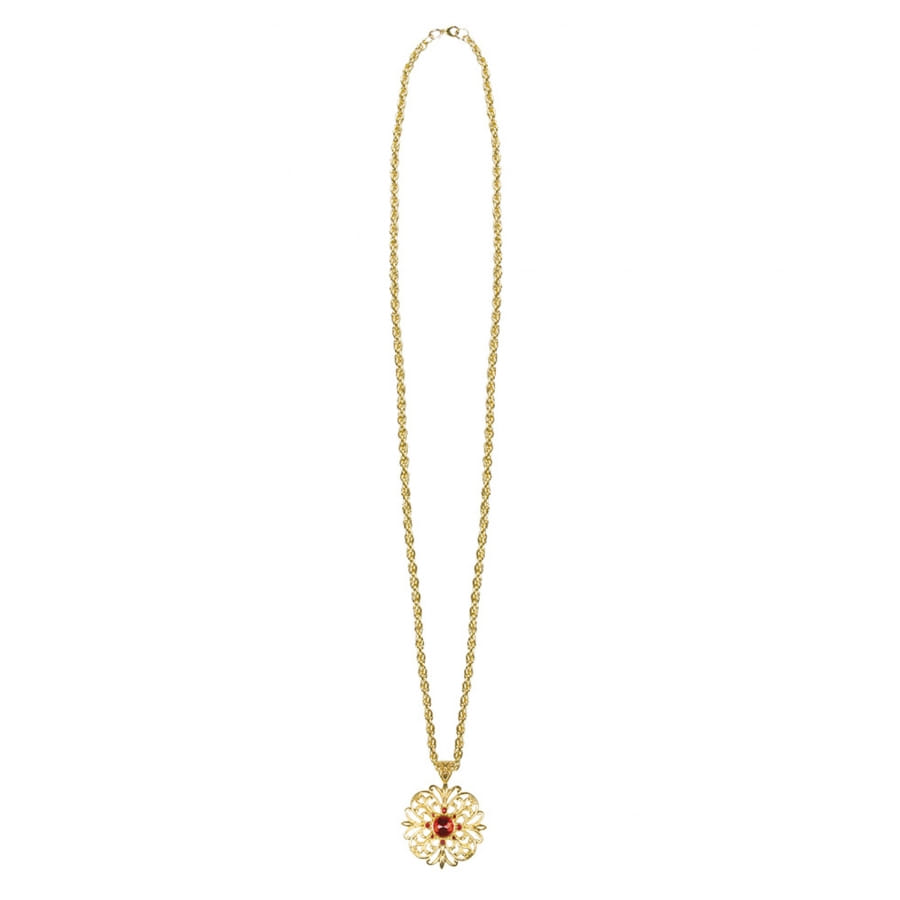 Le médaillon est agrémenté au centre d'une gemme rouge.