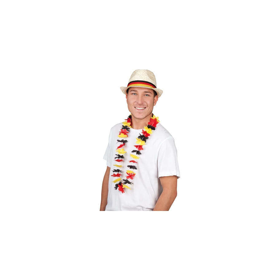 Adoptez le célèbre collier hawaïen pour supporter votre équipe préférée. Pour l'Allemagne, disposez de ce superbe collier Hawaï drapeau Allemand. Il est constitué par une succession de fleurs rouges, noires et jaunes, reprenant les fameuses couleurs du drapeau allemand. Vous pouvez aussi proposer cet accessoire à vos convives à l'occasion de la célébration de la fête nationale.