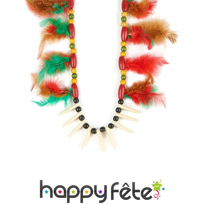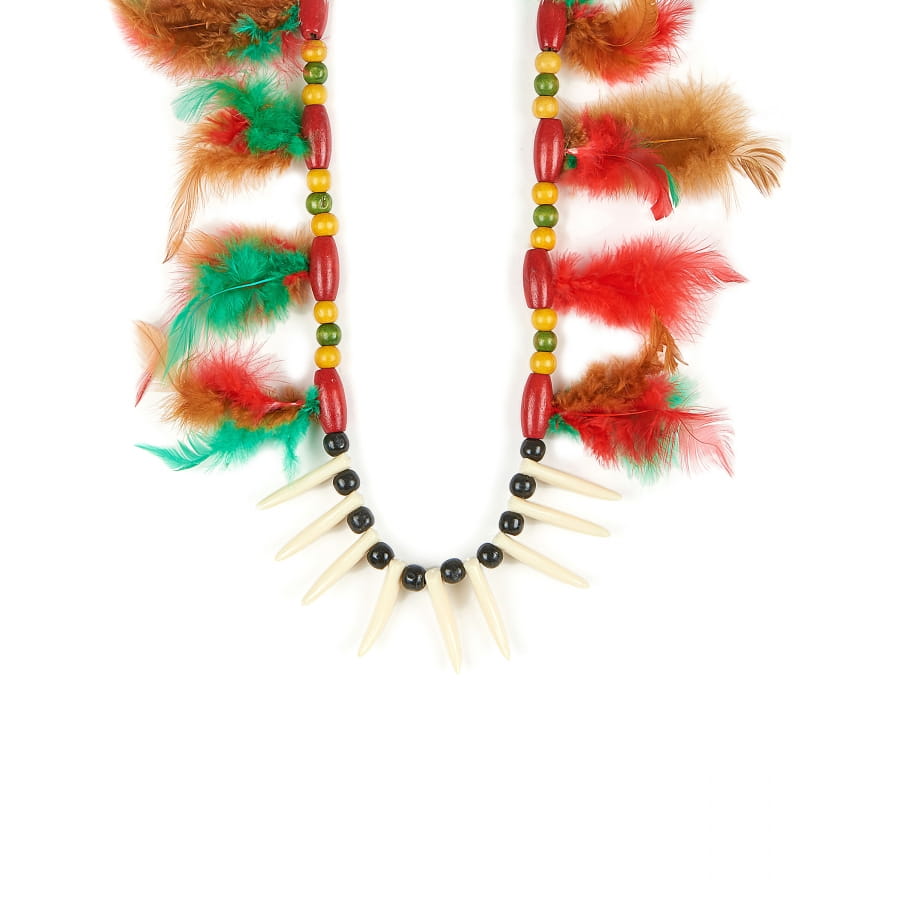 Révélez à vos amis votre appartenance à la tribu apache lors d'une soirée à thème, en portant ce collier indien avec perles en bois et plumes.