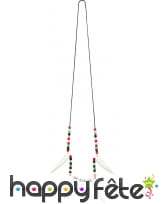 Il est constitué par un lien noir sur lequel ont été disposées des perles rouges, vertes et couleur bois.