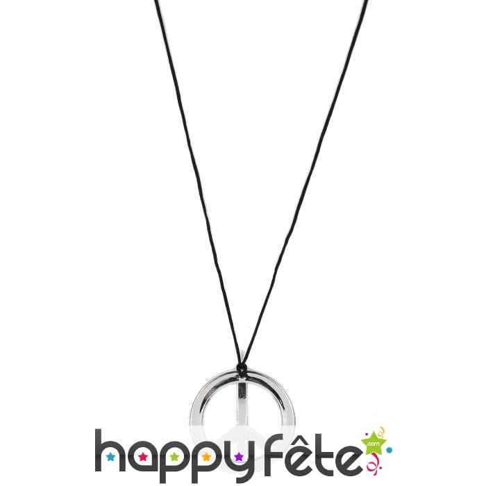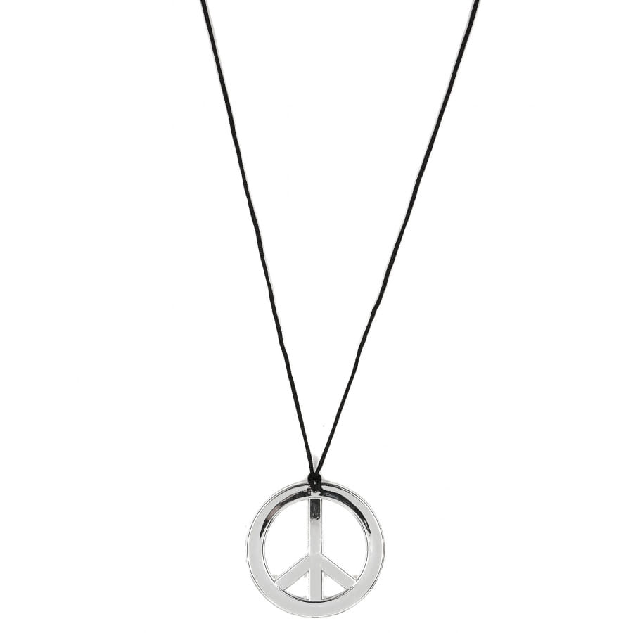 Peaufinez les détails de votre déguisement des années 60 grâce à notre collier peace and love en plastique argenté.