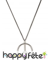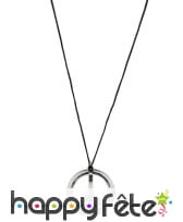 Cet accessoire est fait d'une cordelette à nouer autour du cou et d'un pendentif en plastique.