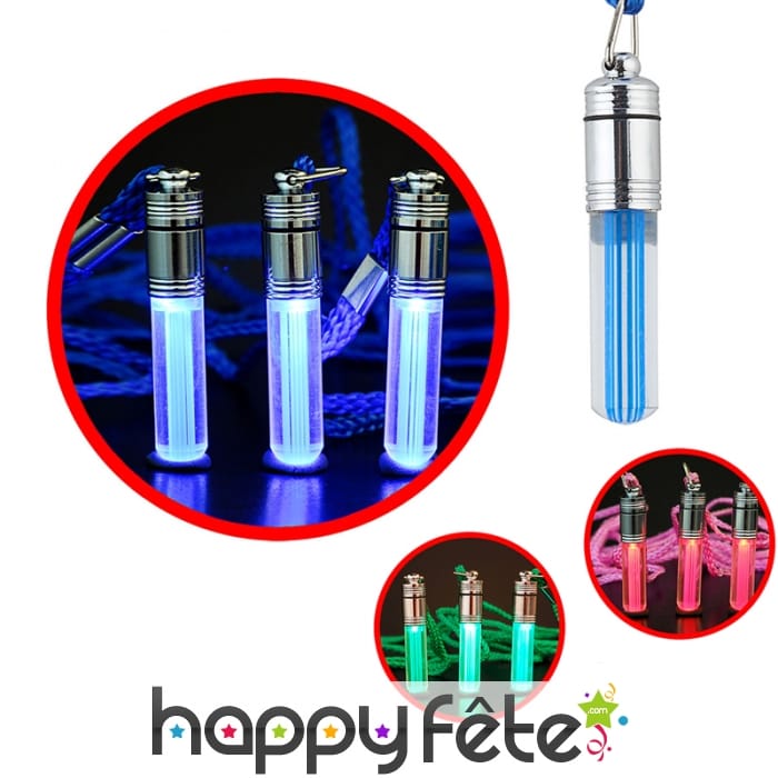 Le collier pendentif tube lumineux de 5 cm est un accessoire original.