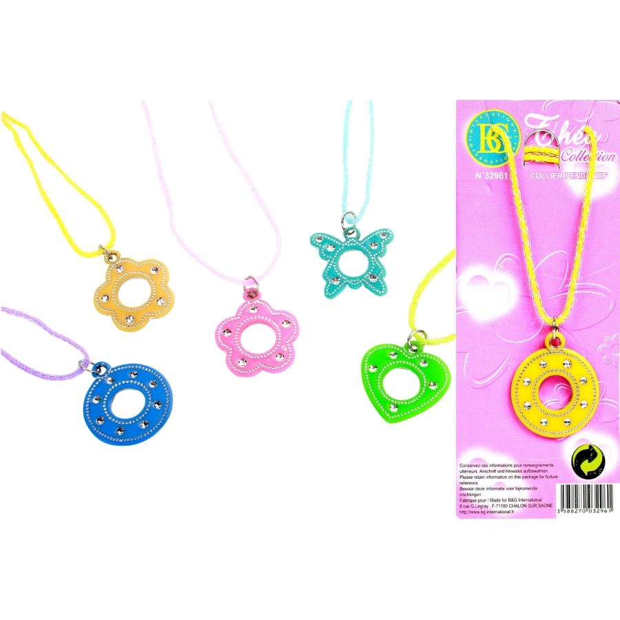 Ce collier pendentif fera sensation a votre cou ou celui de votre fille. De couleur rose, bleu, vert ou jaune, le pendentif peut être un cœur, une fleur, un papillon ou encore un rond. Vous pourrez le porter à plusieurs occasions.