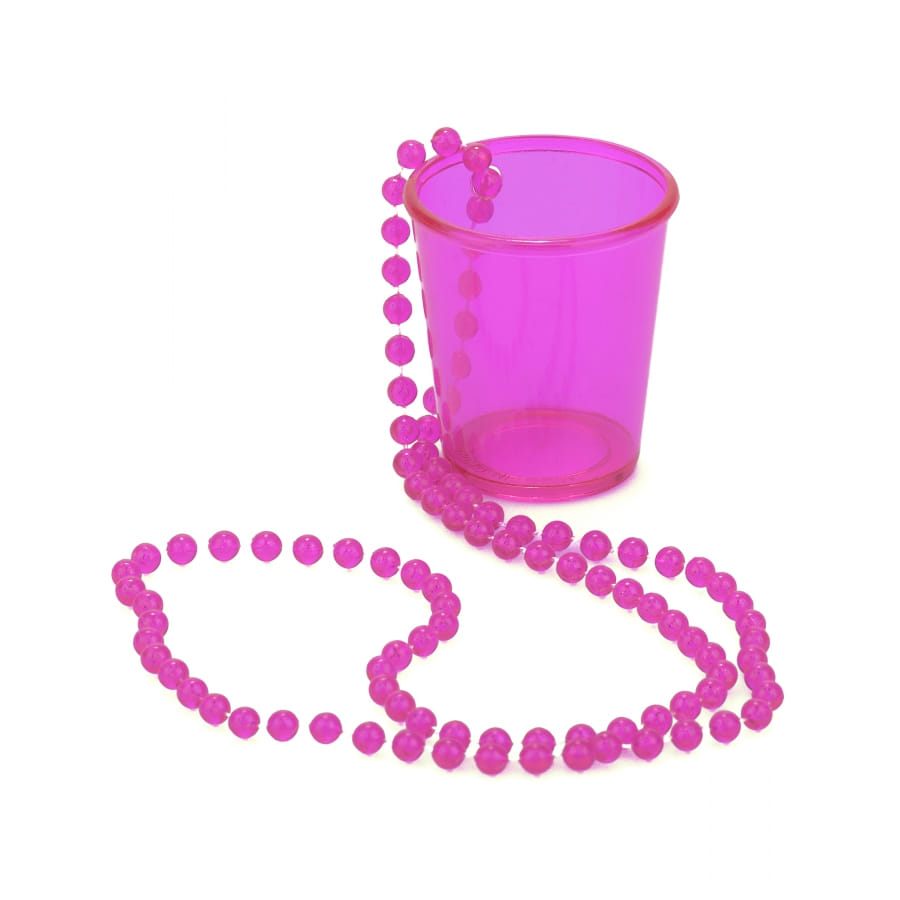 Pour votre enterrement de vie de jeune fille, optez pour ce collier rose avec verre shooter, et sentez-vous libre de vous servir une boisson.
