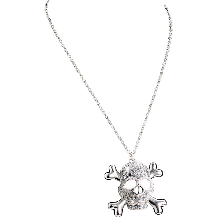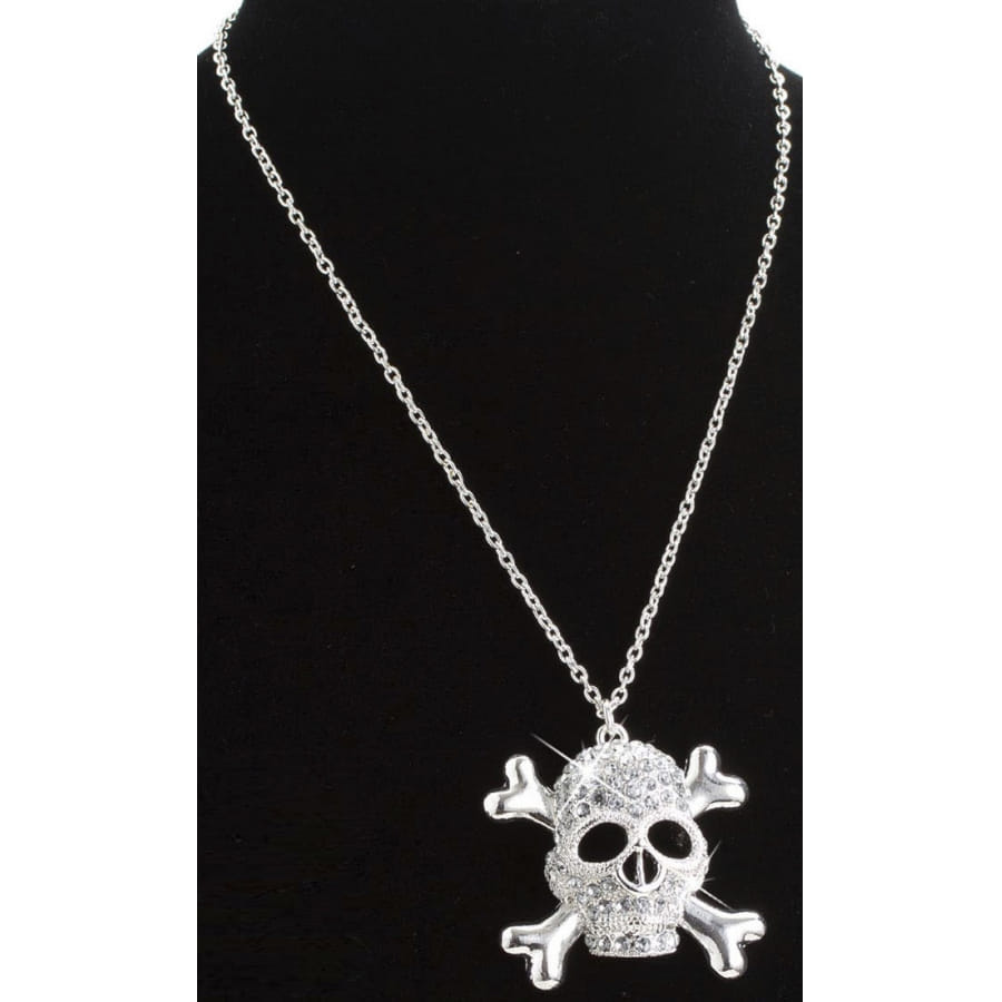 Collier avec pendentif tête de mort agrémenté de strass. Avec cet accessoire, vous arborerez un style gothique et classe à la fois pour Halloween.