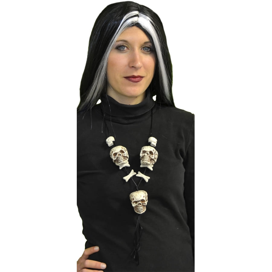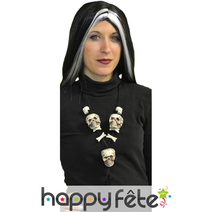 Les têtes de morts sont souvent utilisées pour décorer un accessoire, un objet ou des vêtements. Cette fois-ci, ils sont joliment accrochés à un collier de 56 cm de dimension. Ils sont accompagnés de quelques os, et le tout arbore les couleurs rouge et argent. Madame ou Monsieur, cet article est parfait pour une soirée d'Halloween. Transformez-vous en sorcier vaudou, en squelette ou en cannibale. Beaucoup de possibilités s'offrent à vous !