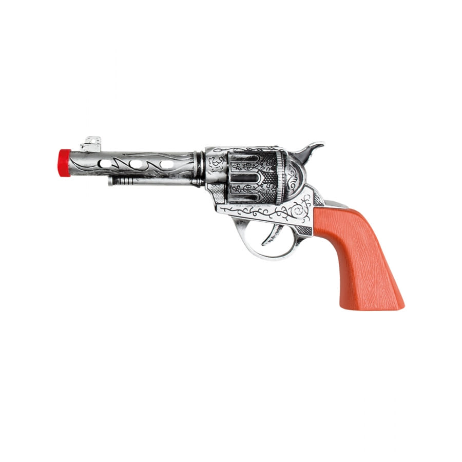 Ce faux pistolet complètera à merveille votre tenue de shérif ou de cowboy à l'occasion des évènements déguisés, des anniversaires et du carnaval.