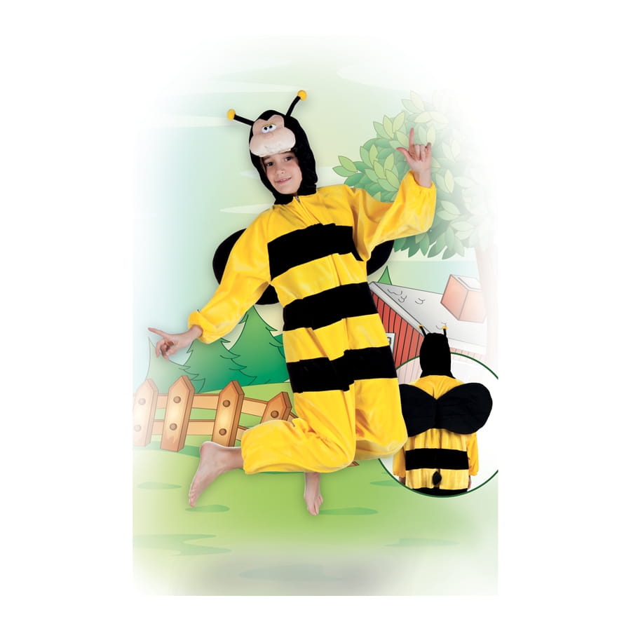 Beaucoup d'enfants aimeraient devenir une abeille comme Maya l'abeille ou son compagnon Willy. Cette combinaison d'abeille rayée noire et jaune est idéale pour une soirée déguisée, Halloween ou pour le carnaval. Garçons comme filles peuvent le porter. Avec cette combinaison rayée, vous rappellerez à tous les autres enfants l'histoire de Maya l'abeille ayant récolté du miel avec ses amis ! Bzzz ! Bzzz ! Ce déguisement d'enfant unisexe est composé d'une combinaison tout en un, avec pieds, mains, tête et queue d'une taille maximum de 140 cm. Votre bout d'chou sera tout en beauté. Complétez son déguisement avec un petit pot de miel et le tour sera joué !