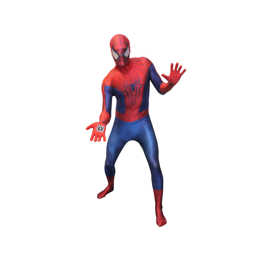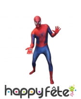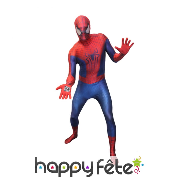 Ce magnifique costume seconde peau combinaison Amazing spiderman 2 réalité augmentée est conçu pour tous ceux qui veulent se faire passer pour le fameux homme-araignée, l'un des super héros les plus connus de la planète. Il est sous licence Morphsuit / Spiderman et se compose d'une combinaison complète proche du corps et d'une cagoule ultra moulante qui cache toute la tête tout en permettant de voir et de respirer. Ce costume est imprimé en rouge et bleu, représentant le costume de Spiderman, de la plus réaliste des manières. Vous l'enfilerez facilement grâce à la fermeture éclair dans le dos. Sachez également que ce costume est doté d'un dispositif de réalité augmentée ! Il vous suffira de mettre le costume, de télécharger l'application et de filmer le déguisement afin de voir les éléments de science-fiction qui viennent se superposer à la réalité. Que diriez-vous de lancer des toiles d'araignée comme le vrai Spiderman le temps de vos fêtes déguisées et d'impressionner tout votre entourage ? C'est plutôt marrant, n'est-ce pas ? Alors, n'hésitez plus ! Notez que ce produit est disponible en tailles L/M/XL.