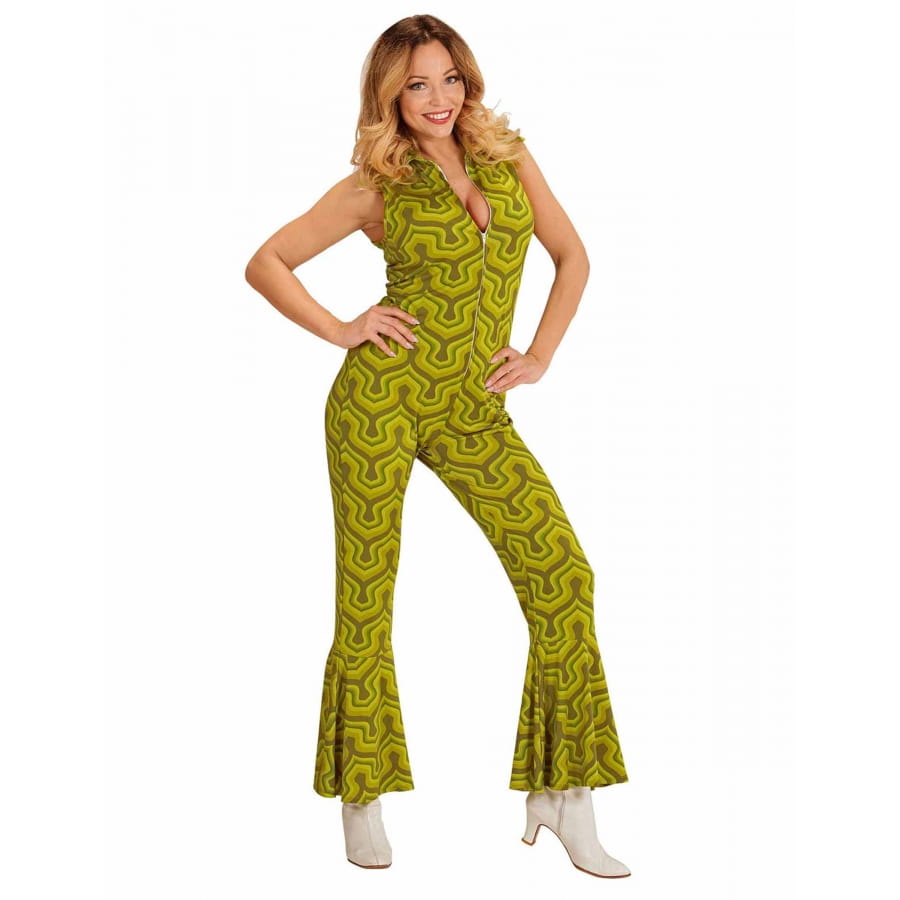 Pour raviver la mode rétro vintage, vous pourrez porter (pendant un carnaval ou une soirée déguisée) cette combinaison années 70 camaïeu de verts pour femme.