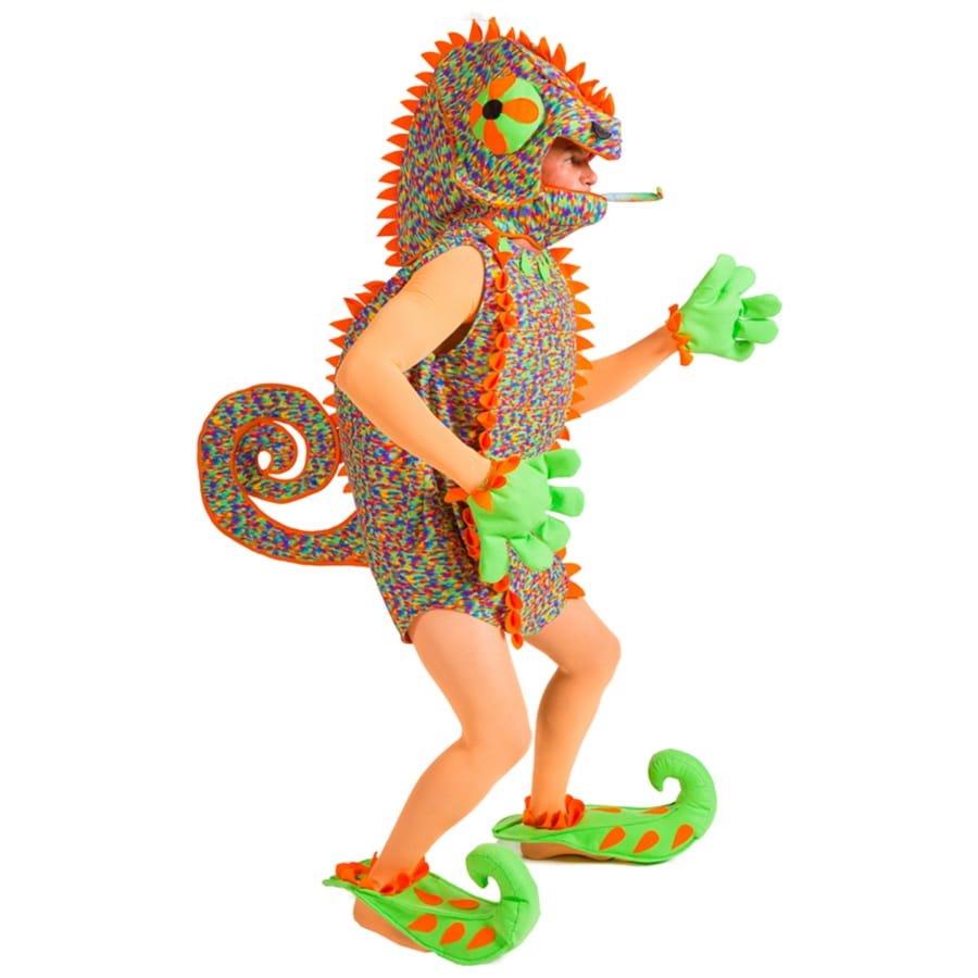 Elle est accompagnée d'une coiffe assortie qui représente la tête du caméléon.