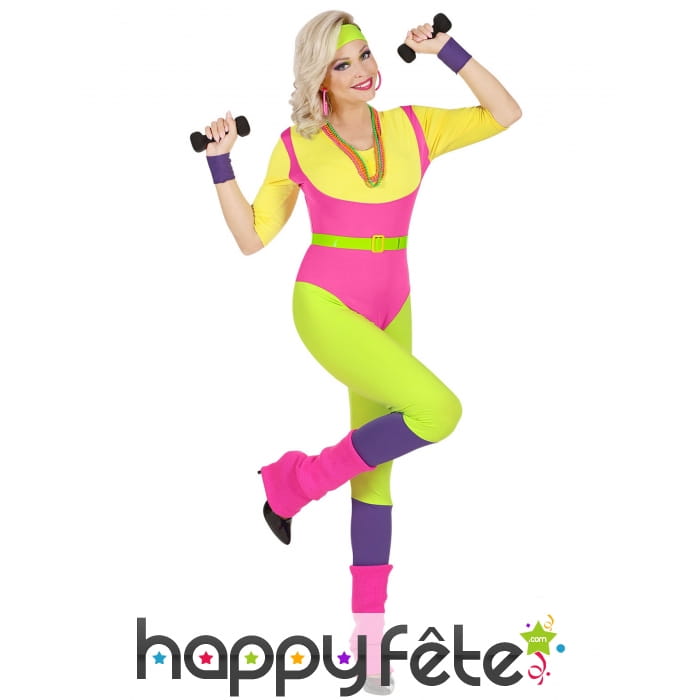 C'est parti pour une séance de sport version rétro, avec la combinaison d'aérobique des années 80 pour femme.