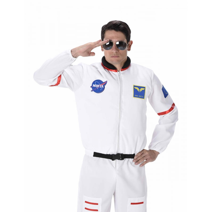 Pour vraiment ressembler à un cosmonaute, il dispose de 3 écussons : sur le devant, un écusson de l'agence spatiale et un autre de Space Shuttle, et sur le bras droit, un autre écusson avec le fanion de l'Union européenne.