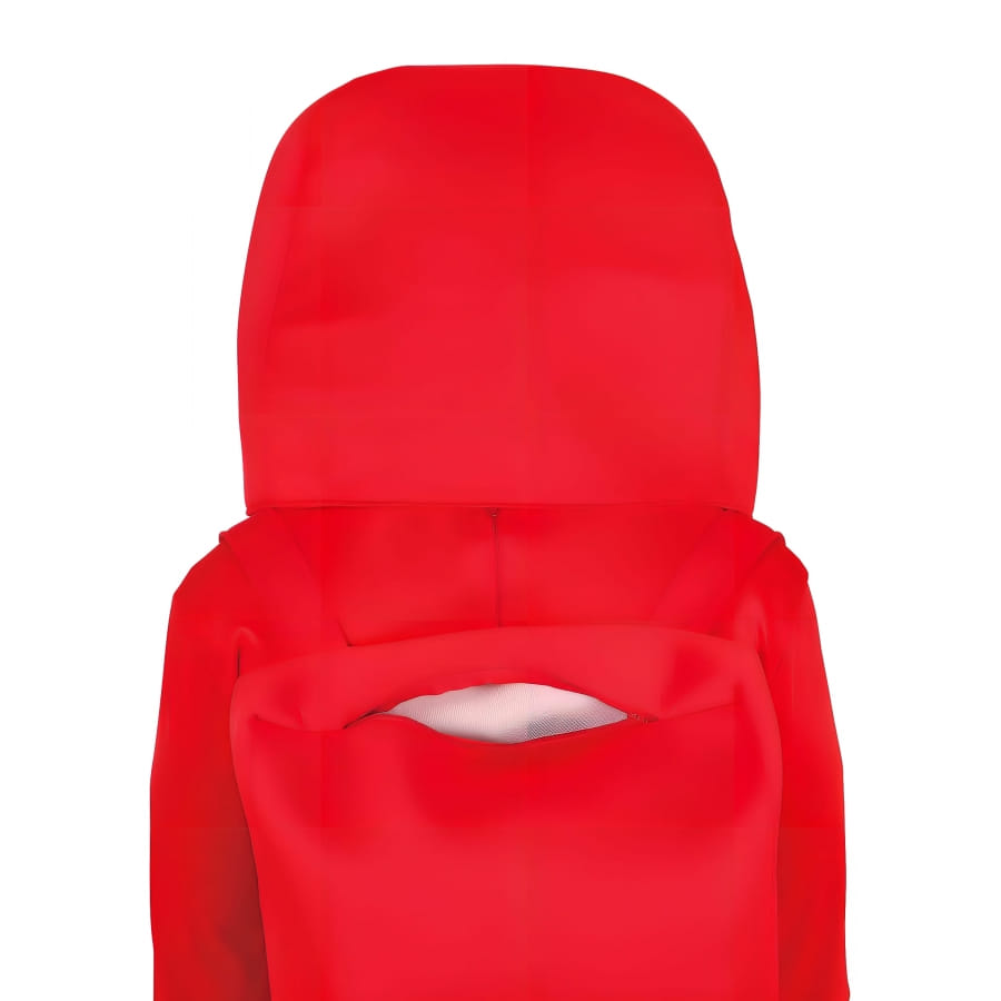 La combinaison rouge est dotée d'une fermeture zip dans le dos pour un enfilage facile et pratique. Sa grande capuche, faisant office de casque d'astronaute, possède une fenêtre argentée rectangulaire à l'avant, à travers laquelle vous pourrez voir sans problème. Cette combinaison confortable et stylée est parfaite pour toutes les occasions nécessitant un déguisement original et captivant.