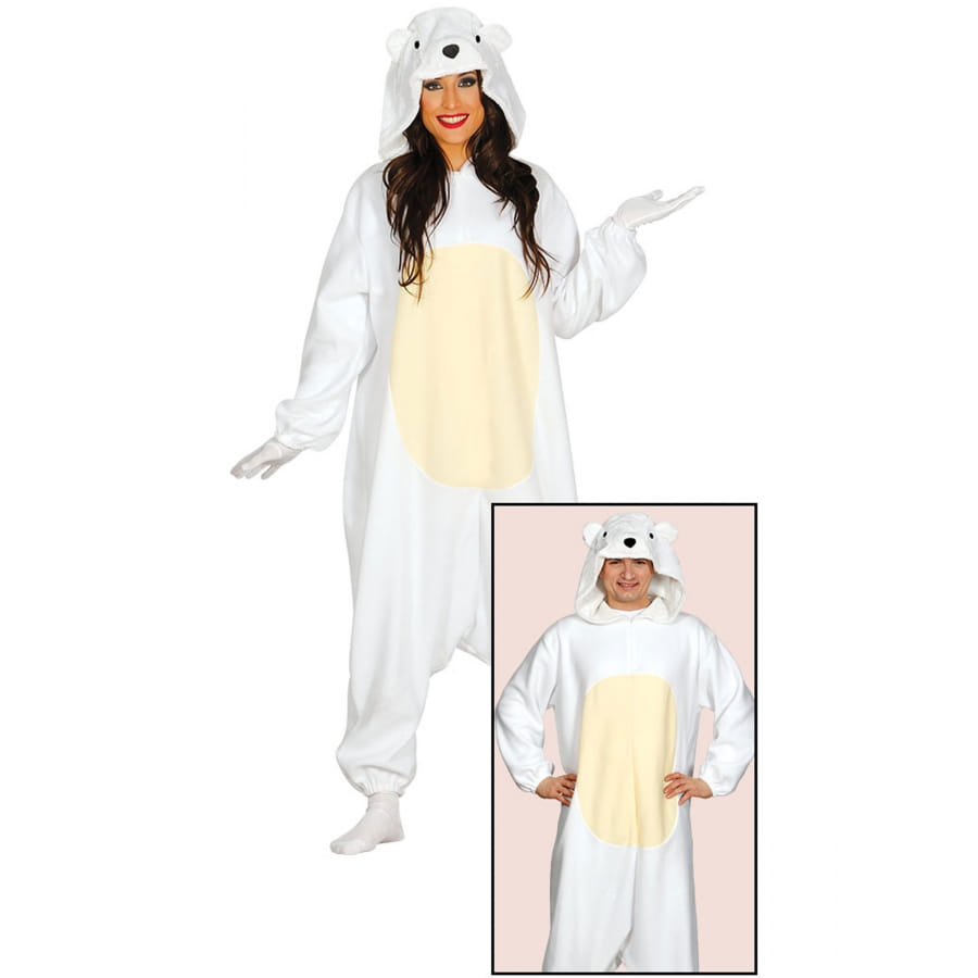 Le déguisement d'ours blanc pour adulte est la représentation d'un ours polaire blanc au ventre beige.