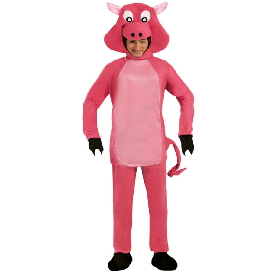 La combinaison d'un cochon rose pour adulte est un costume de 4 pièces complètement roses.