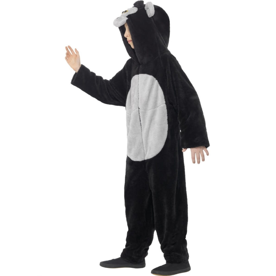 Pour vos petits monstres, rien de mieux que le déguisement de l'un des maîtres de la jungle, pour qu'ils puissent légitimement rebondir dans tous les sens comme ils ont l'habitude de le faire. Ce déguisement que nous proposons, c'est cette combinaison de gorille pour enfant. Pour cela, rien de plus simple, il suffit d'enfiler une combinaison tout-en-un à capuche. Cette combinaison est de couleur noire ainsi que grise au niveau de l'abdomen. La capuche, de même, représentant la tête du gorille, est de couleur noire avec une face et des oreilles grises. Petites filles et petits garçons entrant dans du L, du M ou du S pourront revêtir ce costume. Ils pourront même en faire un déguisement de mascotte.